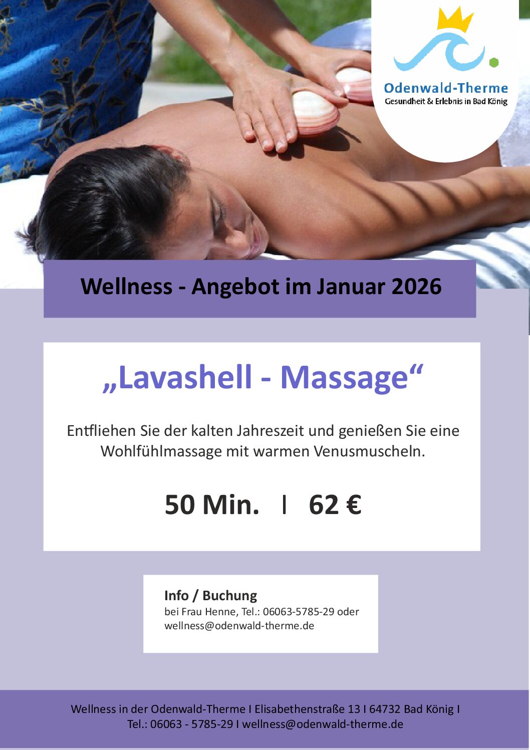 bei Frau Henne, Tel.: 06063-5785-29 oder wellness@odenwald-therme.de