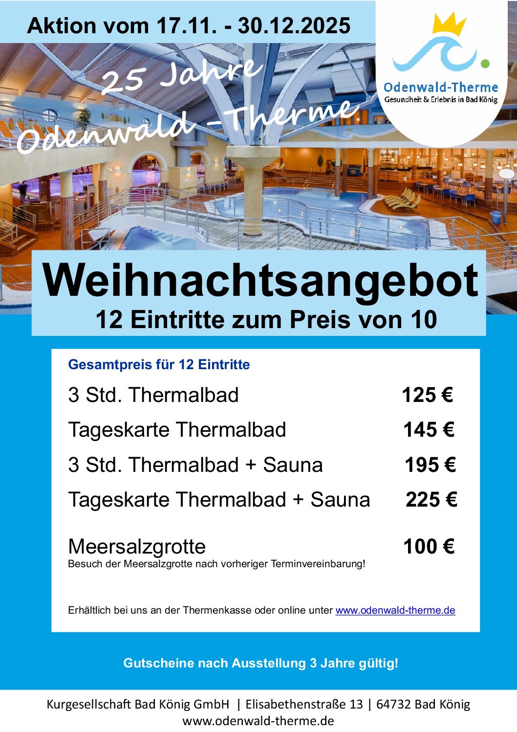 Weihnachtsangebot 12 Eintritte zum Preis von 10